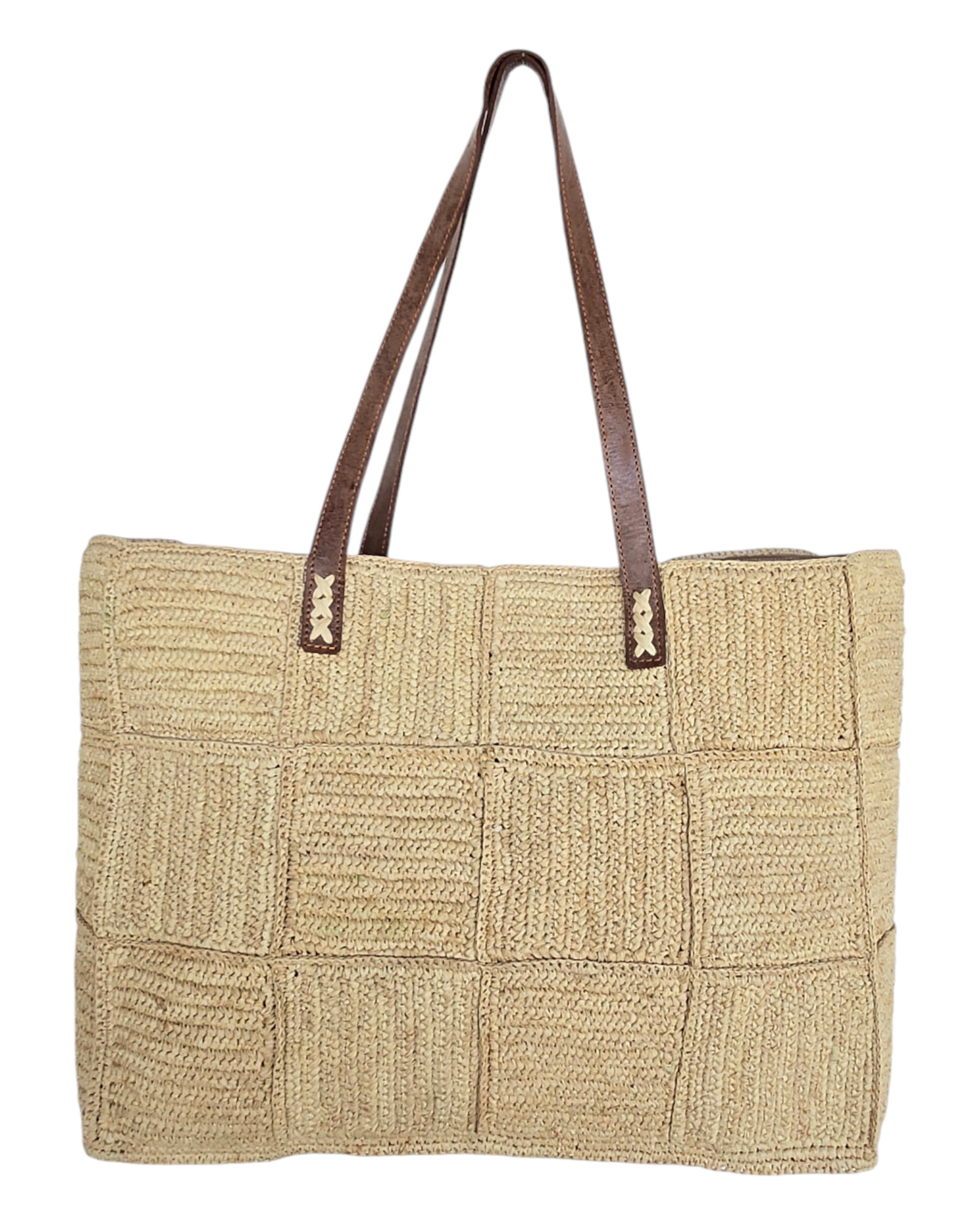 Sac cabas STELLA, crocheté entièrement à la main avec des fibres naturelles de raphia.